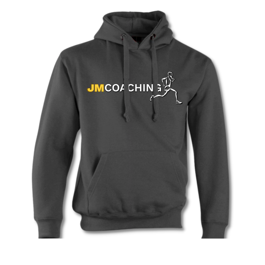 Show your support for JM Coaching with this logo hoodie in charcoal. Ideal for race day to stay warm or lazy afternoons post long run!